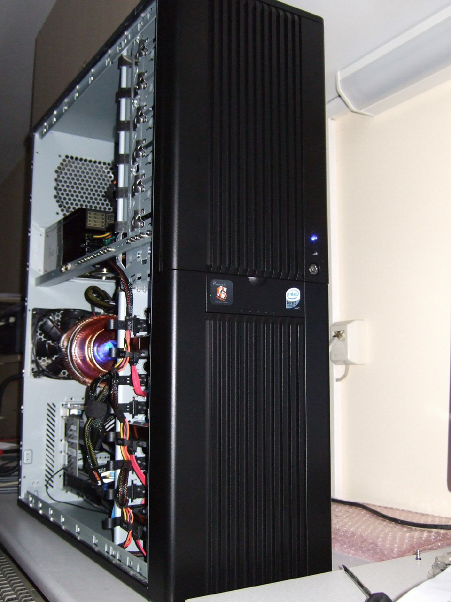 Gehäuse BIGTOWER CHIEFTEC Bravo BA o.N. (B) (Breite x Tiefe x Höhe) 20.5 cm x 54 cm x 67 cm 2 x Hi-Speed USB ¦ 1 x IEEE 1394 (FireWire) CPU: Intel Core 2 Extreme QX9770 - 4x3.60GHz 12MB 1600FSB MB: ASUS 775 Striker II Extreme (GBL/R/F/DDRIII) nforce 790 RAM DDR3 4GB / 1600Mhz OCZ XTC Platinum DC KIT CL7 rt (auf 8GB) HD1 2000GB (2x 1000GB RAID0) Samsung / WD / Seagate, 7200U/Min 32MB S-ATA2 HD2 300GB WD VelociRaptor WD3000GLFS, 10000U/Min 16MB S-ATA2 SLI-Bundle 2x NVidia GeForce GTX 280 Extreme, 1024MB PCIe, DVI / TV-Out XFX 1. LW Blu-ray-RW LG Electronics GGW-H20L Hybrid, 6x BD-R S-ATA 2. LW DVD-RW Plextor PlexWriter PX-820SA, 20x DVD±R S-ATA Netzteil ATX 1000W BEQUIET Dark Power Pro FDD schwarz Teac / Nec Monitor 30" Samsung SyncMaster 305T Plus - schwarz (16:10) Inkl. hochwertiger Kupferkühlung und Montage Inkl. aller Treiber Medien und individueller Softwareinstallation (WIN, Linux) 2 Jahre kostenloser Vor-Ort Abhol-Service inkl. Telefon-Support
